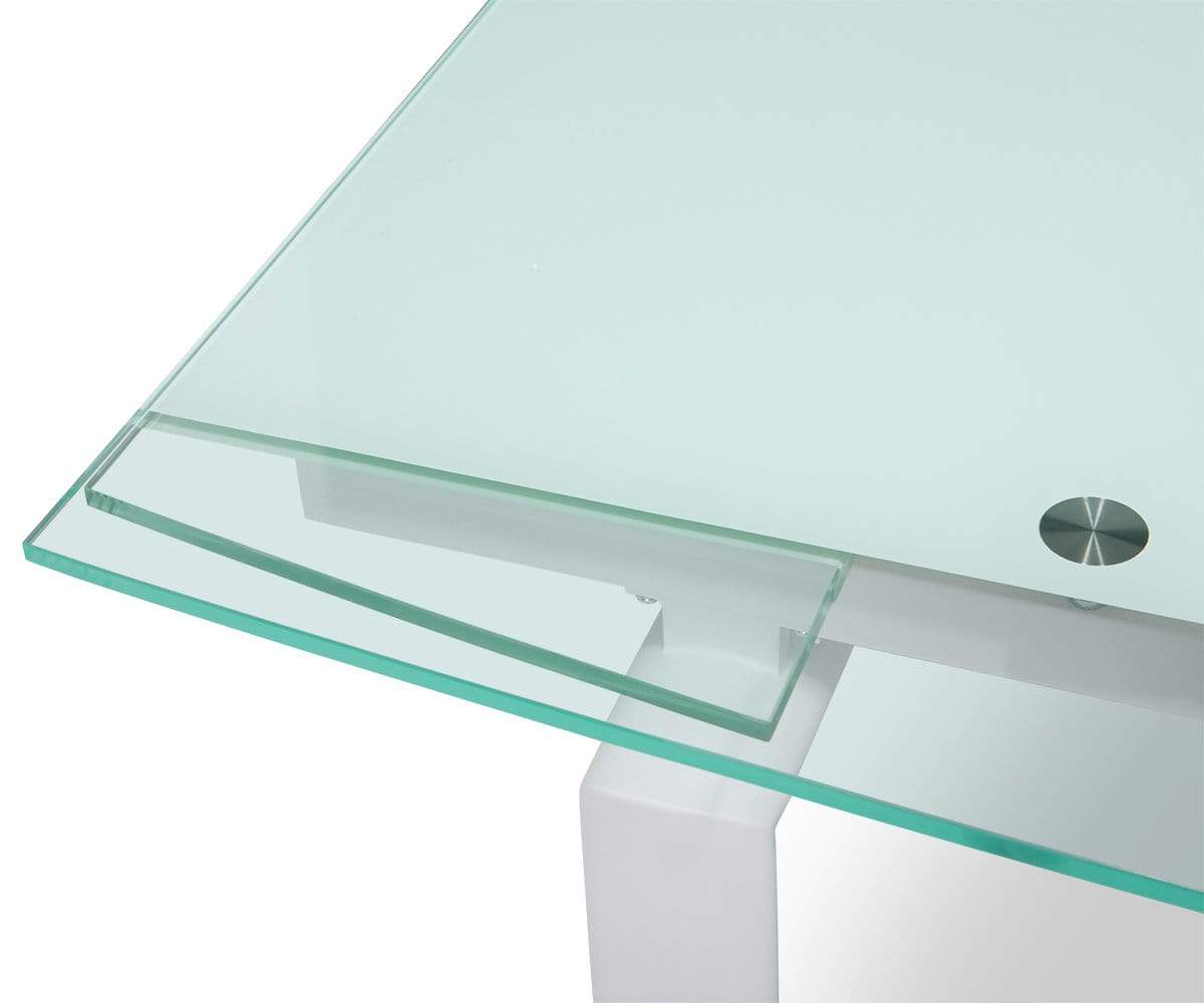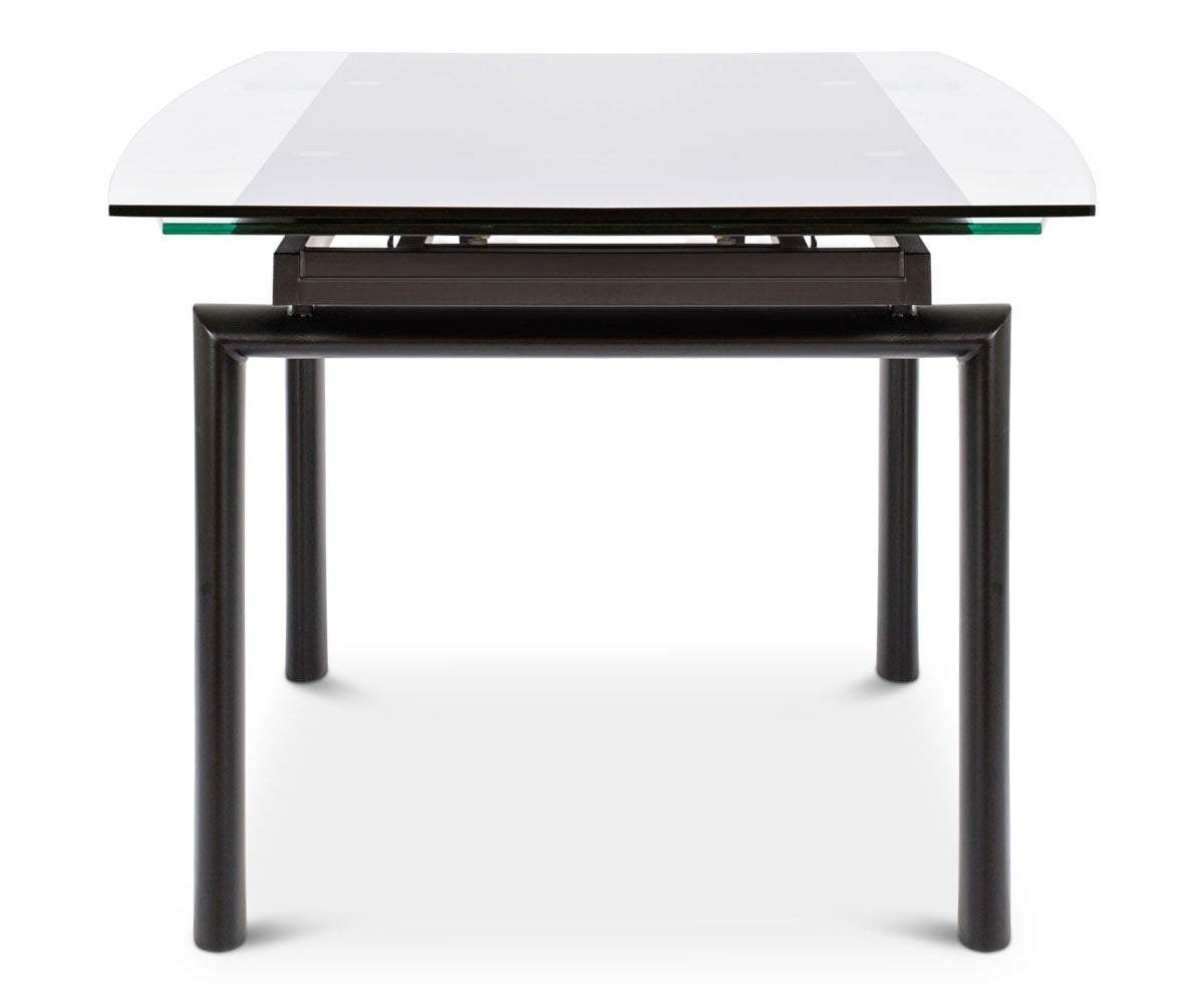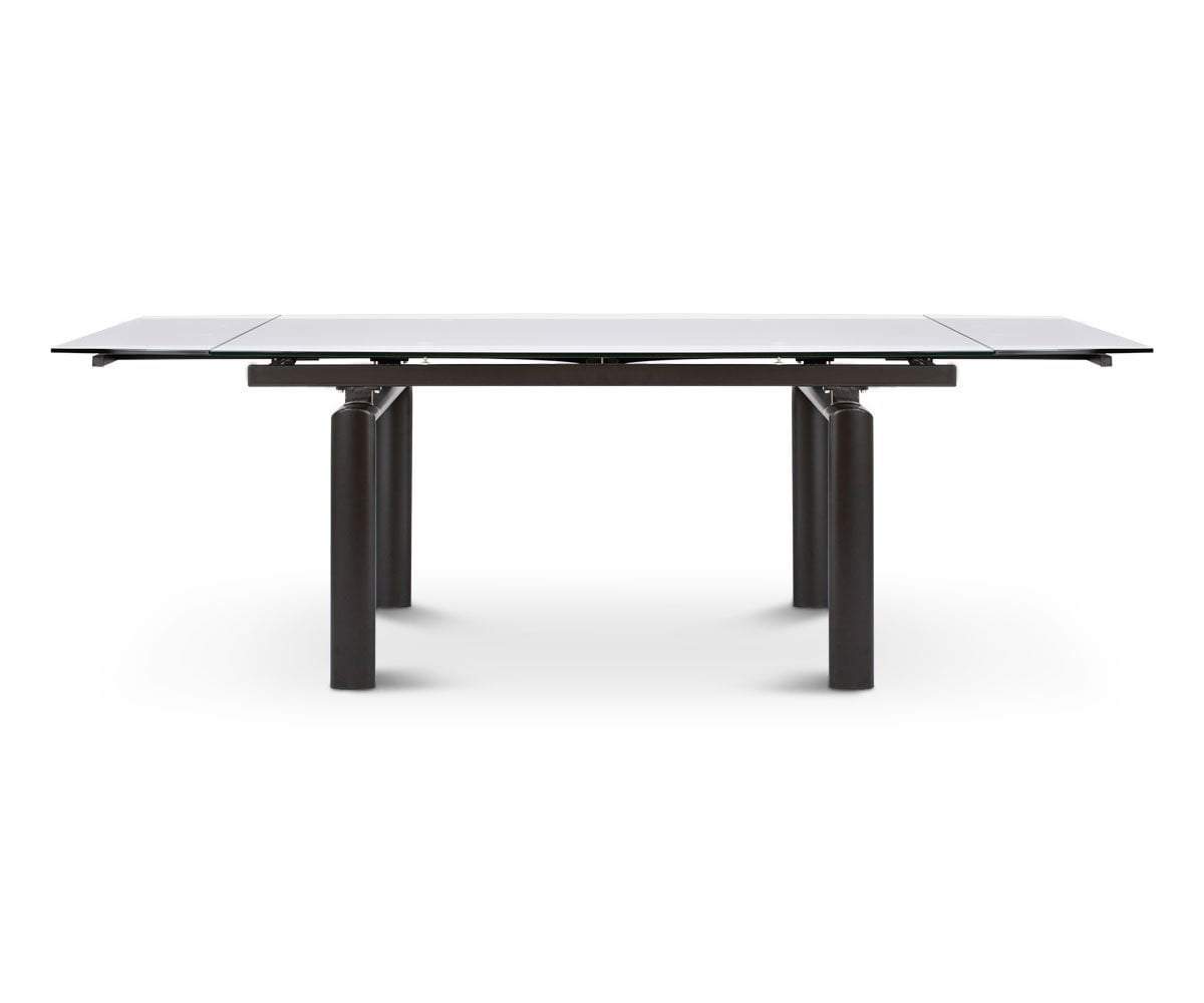 Solid, tempered glass and an angular, metal frame imbue your dining space with a sleek modern aesthetic. Plus, the Hispi can be extended with two leaves to seat up to eight!